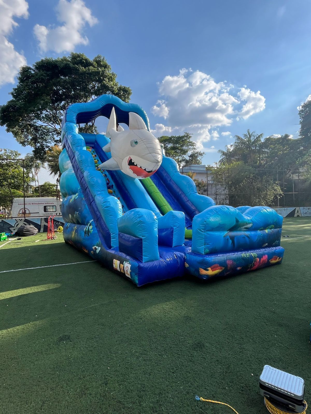 Trabalhamos seguindo as normas da ABNT – NBR 15859 – Brinquedos infláveis de grande porte – Requisitos de segurança e métodos de ensaio.