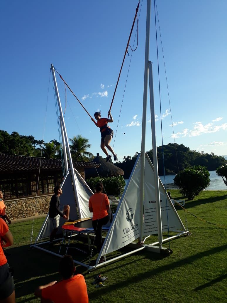 Aqui na L’avventura, a adrenalina é garantida! 🤩 O Bungee Trampolim permite saltos altíssimos e até acrobacias super divertidas, sempre com monitoramento e segurança.