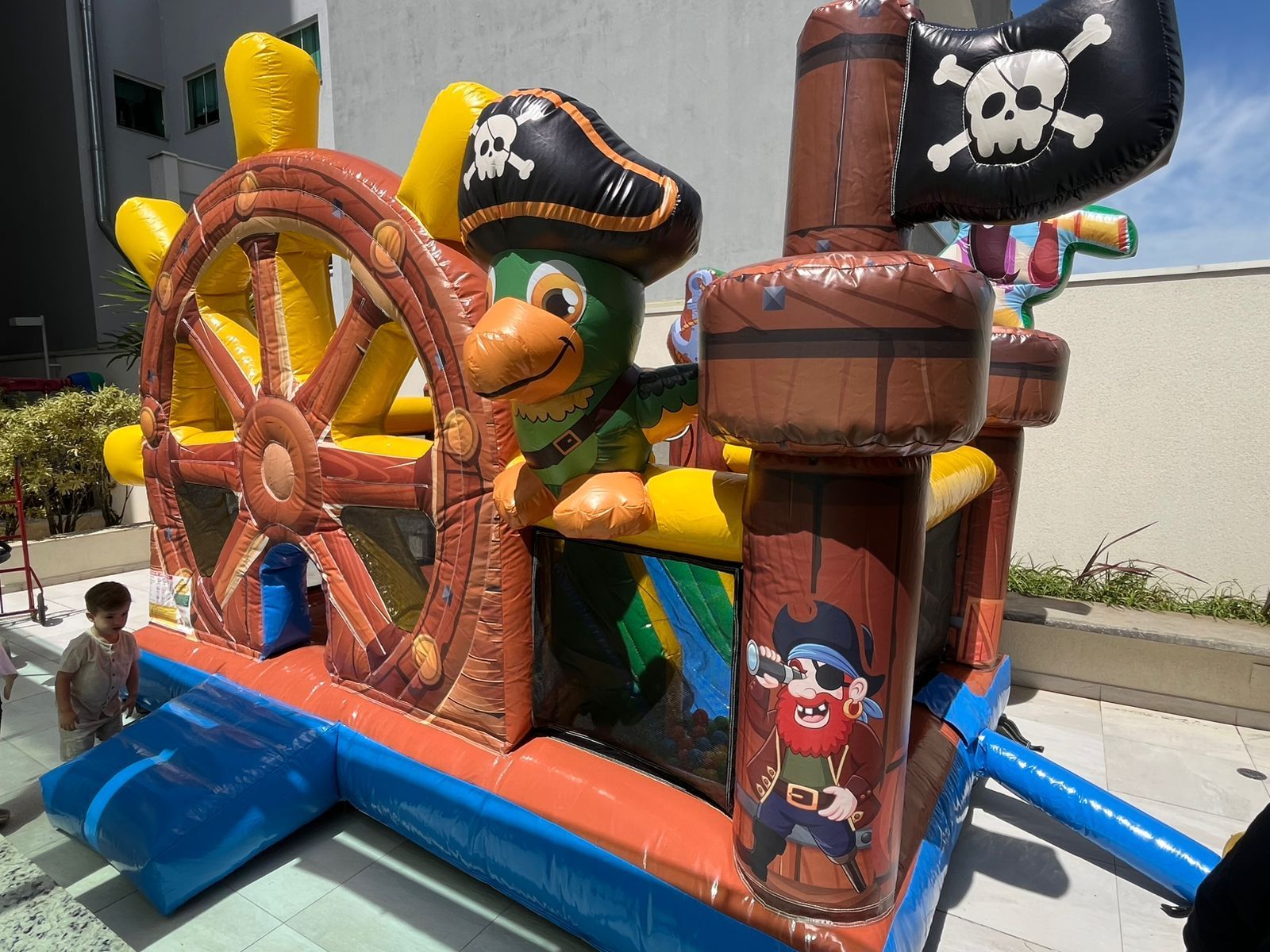Com tobogã inflável Barco Pirata é diversão garantida para a criançada! Além de tobogã com pula pula ele pode ser escorregador com bolinhas coloridas torna a brincadeira muito mais atrativa e divertida.